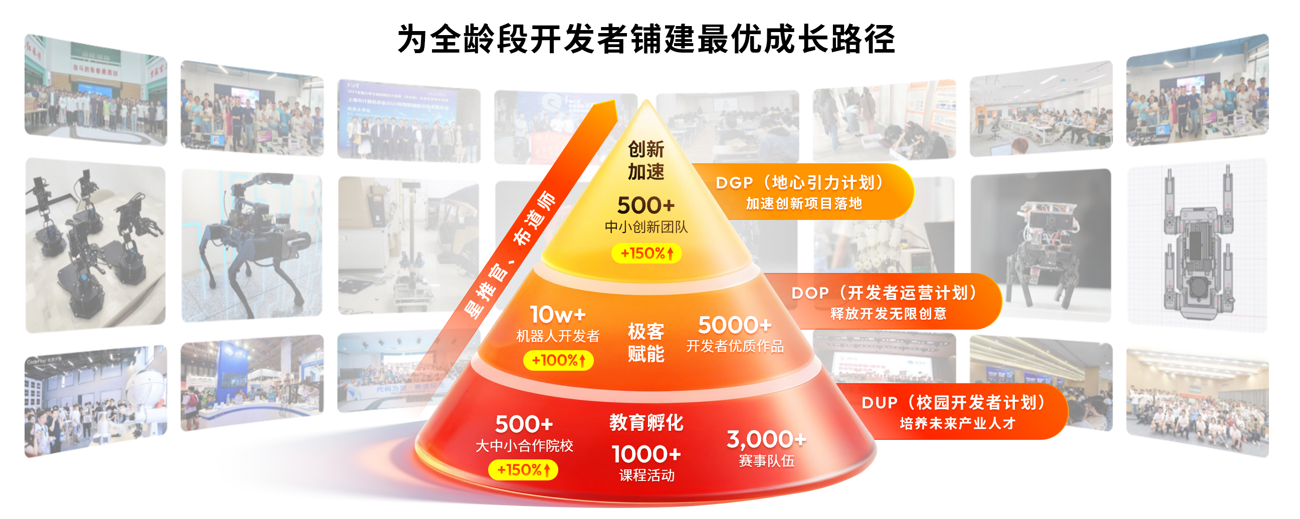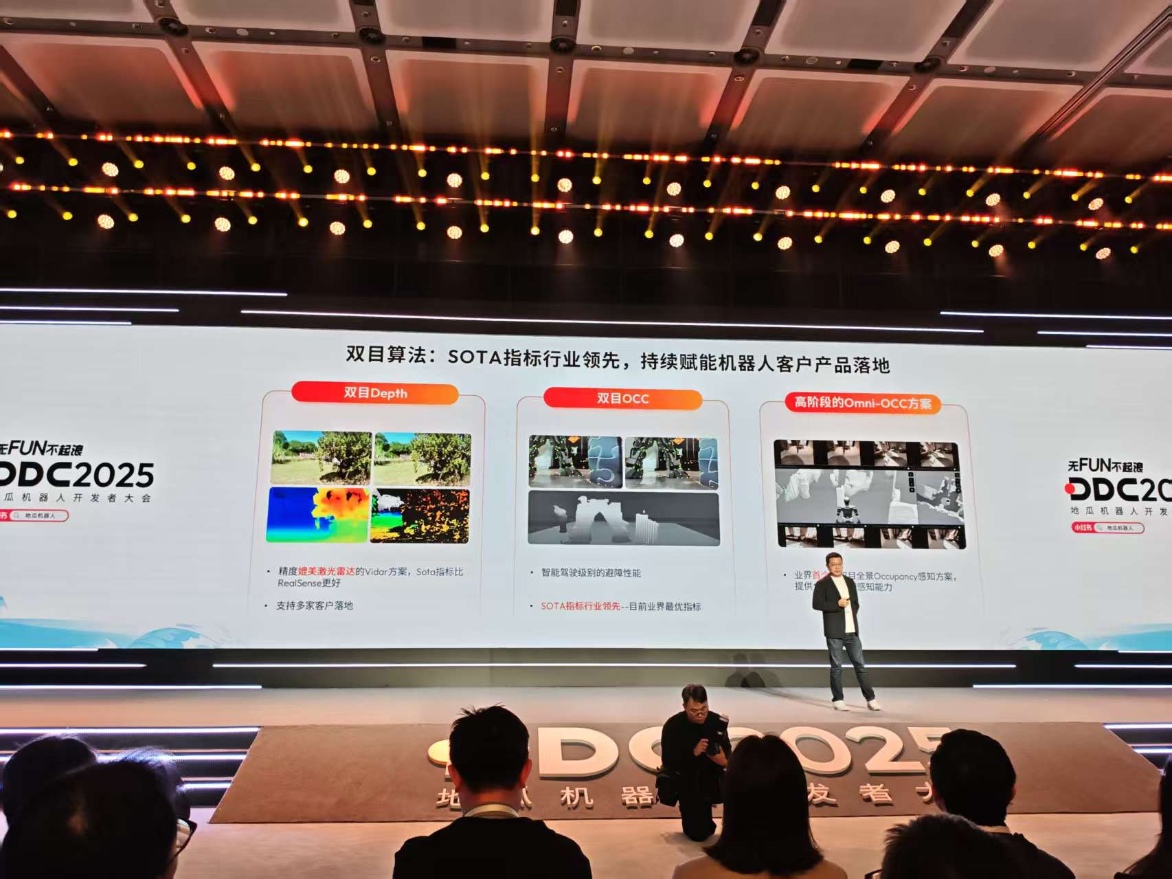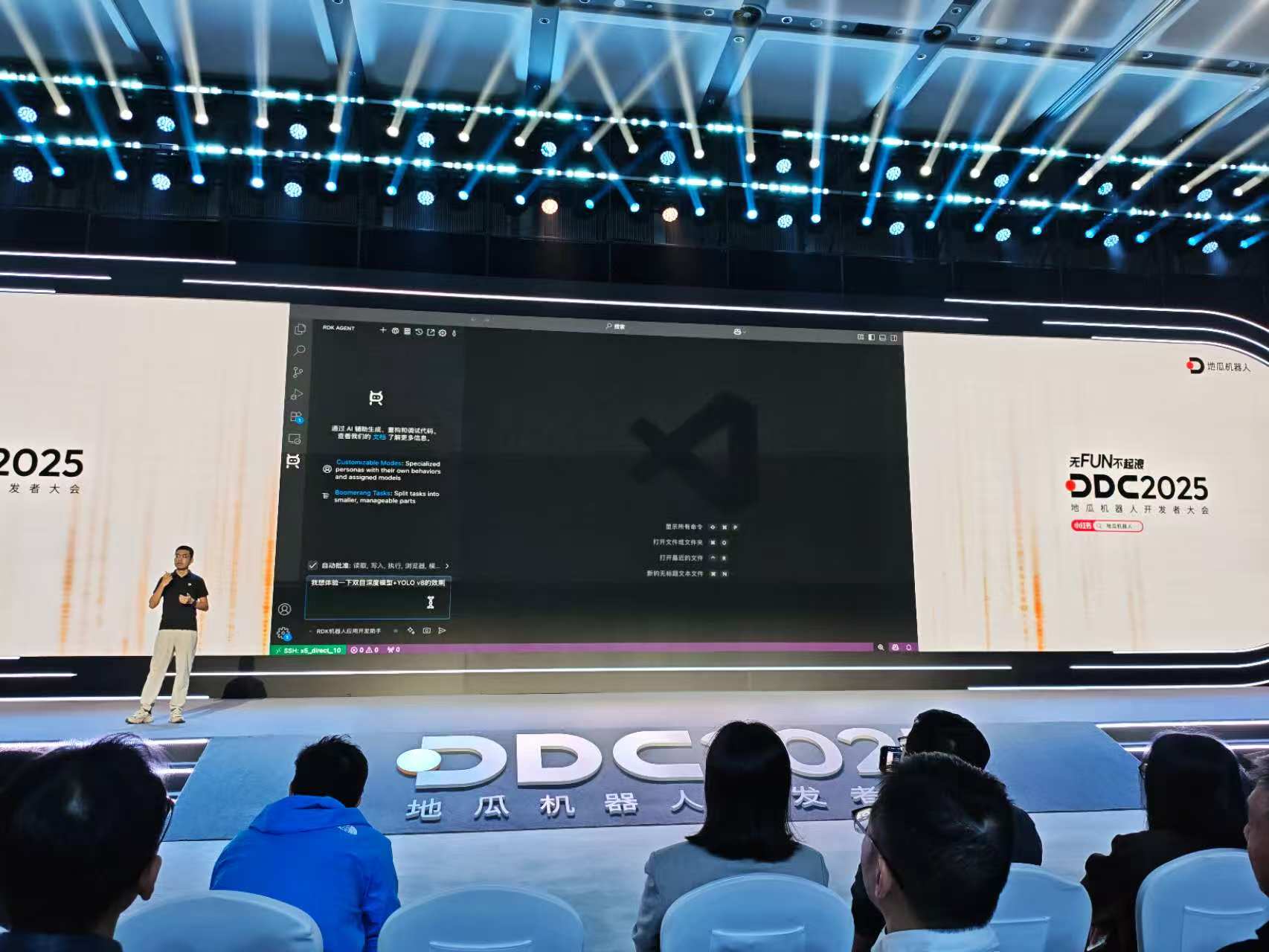 值得一提的是,作为地平线控股子公司,地瓜机器人在算法领域有着雄厚技术实力,例如 SOTA 指标行业领先的自研双目算法,包括精度媲美激光雷达的双目 Depth、避障性能达到智能驾驶级别的双目 OCC、业界首个多双目全景 Occupancy 感知高阶段 Omni-OCC 方案等。此外,地瓜机器人自研 VO-DP 纯视觉 Manipulation 抓取方案性能超行业 SOTA,成功率超越 DP 和 DP3、泛化性和鲁棒性远超 Pi0.5,达到工业场景的应用要求。 注: SOTA(?State of the Art)指标,指在特定领域或任务中当前达到的最佳性能水平或最先进的技术表现?,通常以准确率、误差率等量化指标衡量。 ![]() (雷科技现场摄制) 今年以来,在云鲸逍遥系列扫地机器人,在维他动力智能伴随机器狗,甚至是在影石 Insta360 打造的全球首款全景无人机影翎 Antigravity A1 上,都有地瓜机器人平台的身影。 机器人开发有多简单?一句话的事 地瓜平台的机器人应用开发与部署,有多简单? 甚至,只是一句话的事。 在地瓜机器人推出的全新一站式开发平台中,RDK Agent 开发助手,可实现「一句话完成机器人应用开发与部署」。 DDC 2025 主题演讲,地瓜机器人开发者生态副总裁胡春旭就现场秀了一把,Coding Show 环节也变成了 Living Show,「因为不需要写代码」。 ![]() (雷科技现场摄制) 想给机器人开发一个基于双目的视觉识别算法,那么只需要向其输入一个基本描述指令,然后 Agent 就可以去执行、开发和部署了。 更加复杂的功能,例如编程:「让机器人打开一个摄像头,并且通过一段 Python 代码帮我完成一个示例的程序」,输入这段指令后,Agent 就开始思考和执行,全自动过程中写了 300 多行代码,并呈现了最终的运行效果。 胡春旭表示,机器人开发,例如开发终端的使用,对很多高手来讲是宝贝,但对于很多初学者来讲真的很痛苦,「降低创新的门槛,才是技术最大的浪漫」。 ![]() (雷科技现场摄制) 地瓜机器人平台的设计理念,就是通过把复杂的算力、算法、工具打包成简单的「积木」,帮开发者「解决 99% 的汗水」,让其专注「1% 的灵感」,快速实现从创意到创造再到落地的全过程。 ![]() 在这套「软硬结合 + 端云一体」协同的开发体系中,地瓜机器人平台: 面向端侧,基于成熟且不断进化的 BPU 智能计算架构,提供覆盖各算力段的旭日智能计算芯片和 RDK 机器人开发者套件双系列产品矩阵,并持续迭代; 面向云侧,提供让机器人开发更简单的一站式开发平台,结合数百种不断更新的端侧可直接部署的机器人智能算法,助力开发者高效打造具有竞争力的智能机器人产品。 机器人进入大时代,应用开发正当其时 一千个人心目中,可能有一千种样式的机器人。 ![]() (雷科技现场摄制) 在地瓜看来,千姿百态、各展所能的机器人产品,归类下来,总共有三大类型: 1.已大规模量产的机器人产品(服务机器人,例如智能清洁机器人等,以及工业/特种机器人) 2.无处不在的机器人新应用(天马行空的创意机器人想法和设计) 3.通往未来的通用具身智能机器人(人形机器人等) 机器人形态可以多种变化、各种演绎,但万变不离其宗。地瓜想做的,正是搭建这样一个软硬件通用底座,在降低大中小开发者群体开发、部署机器人应用难度的同时,实现自身的平台和企业价值。 ![]() 地瓜机器人平台生态产品 地瓜机器人,此番在放出更高性能硬件开发平台工具 S600 预览的同时,更为中小开发者(尤其个人开发者)群体,带来了可以大幅简化工作量和降低操作门槛的一站式开发平台,这对壮大其生态开发者群体,乃至国内机器人开发者群体,都是一件益事。 正如王丛所言,地瓜机器人全新开发工具组件意在「打破行业普遍存在的『重复造轮子』问题,以更低门槛、更高效能拥抱即将到来的全新时代浪潮」。 针对新锐开发者、全年龄段开发者、以及具身智能研究人才,地瓜机器人亦拿出了专门的扶持方案。 目前,地瓜机器人已涉足亚太、欧洲和北美等 20 多个国家,迄今已服务全球超 10 万名机器人开发者。面向创业公司,地瓜机器人推出全球生态创新项目 DGP 地心引力计划,目前已支持超 500 个中小创新团队实现项目落地,包括来自朗极智能、卢登斯智能、恒之未来、巡领科技、睿亚极光等的多个优秀项目。 在机器人产学研和开源生态建设上,地瓜机器人联手点猫科技、阿里云、嘉立创、达摩院等国内产学研伙伴,支持超 500 所海内外大中小院校,共同打造具身智能教育课程体系和人才培养方案、探索前沿具身技术创新;同时联手 Ultralytics YOLO、ROS、LeRobot 等全球开源伙伴,协同 Lumina 等具身智能社区力量,共建开放共享的具身机器人创新策源地。 面向全球具身智能顶级人才,地瓜机器人还正式启动了「地瓜青年学者计划」,旨在重点资助科研领域的优秀青年学者,开展具身智能核心技术攻关,实现前沿创新突破。 ![]() 以上一套组合拳下来,地瓜长期愿景的「成为机器人时代的母生态」,开始照进现实。 不过,机器人领域中今年炙手可热的人形机器人,距离大规模商用应该还有不短的日子:究其原因,一个是核心产品定价,一个是综合技术成熟度。湖北人形机器人创新中心董事长李正祥就表示,「中国人形机器人发展非常快,但真正进入家庭,还需 5 到 8 年的技术积累和完善。」 对地瓜机器人来说,将旗下开发平台推给更多的服务机器人乃至工业机器人厂商,是现在、是经营;将旗下更简易的开发工具带给更多人形