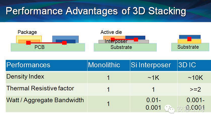 摩尔定律驱动的半导体制程的进步是当今高科技工业的发展动力。但是逐渐的,传统的制程换代已不再满足新一代系统性能,产出和功耗要求。虽然芯片并排(2D结构),封装叠加(PoP),和封装套封装(Package-in-Package, PiP) 等平台可以集成两个或多个芯片,但它们不能提供足够的密度,带宽和功耗来满足新一代产品路线图的要求。