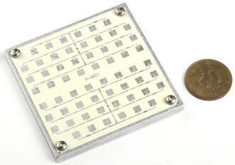 理论和实践证明,当天线的长度为无线电信号波长的1/4时,天线的发射和接收转换效率最高。因此,天线的长度将根据所发射和接收信号的频率或波长来决定。幸运的是,毫米波的波长只有几个毫米,所以毫米波雷达的天线可以做的很小,同时还可以使用多根天线来构成阵列天线,达到窄波束的目的。目前毫米波雷达天线的主流方案是微带阵列,最常见的一种是设计成可集成在PCB板上的“微带贴片天线”,如图4,在PCB板上的ground层上铺几个开路的微带线形成天线。