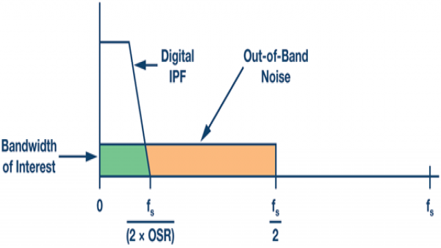 利用过采样和抽取滤波器所取得的SNR 改善,可从N 位ADC 的 理论SNR 求得:SNR = 6.02 ×N + 1.76 dB + 10 ×log10[OSR],OSR = fs/(2 ×BW)。注意:此公式仅适用于只存在量化噪声的理想ADC。