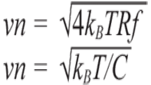 除放大器噪声外,电阻和电容也会有电子噪声,后者是由处于均衡态的电导体内部的电荷载子的热扰动产生的。RC 电路的热噪声有一个简单的表达式,电阻R 是满足滤波要求所需要的,同时R 越高,相应的热噪声也越大。RC 电路的噪声带宽为1/(4RC)。