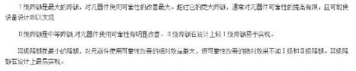 所谓的降额设计是使零部件的使用应力低于其额定应力的一种设计方法。将元器件进行降额使用使电子元器件的工作应力适当低于其规定的额定值,具体降额等级可以参考《国家军用标准——元器件降额准则GJB/Z35-93》,一般可分成三个降额等级: