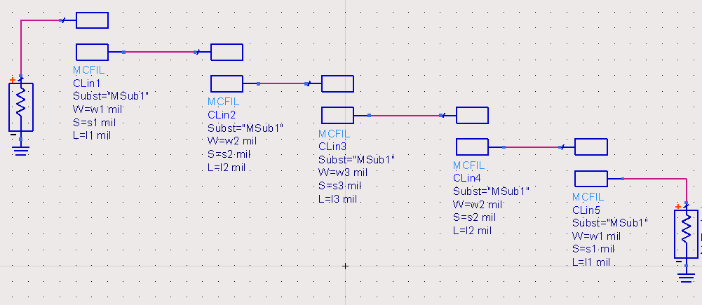 微带耦合滤波器的电路结构: