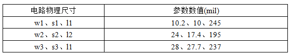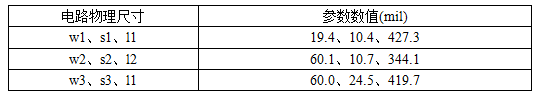 " x- b& J$ a4 w8 O9 L表1:高频板材RO3010的电路物理尺寸$ D! W# s/ W& Z1 v, p. J