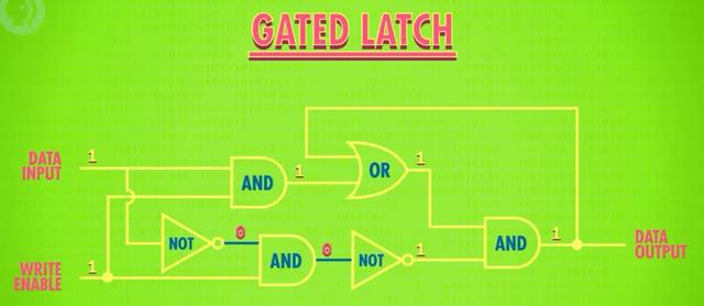 现在有了记录1和0的电路,为了做出有用的存储(memory),我们将两个电路合起来,变成了“AND-OR锁存器”