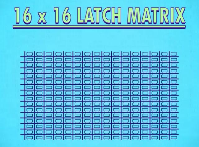 在矩阵中,我们将锁存器做成网格,那么存256位只需要16x16的锁存器。
