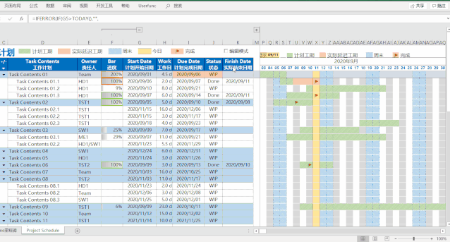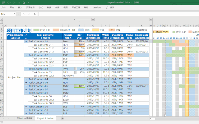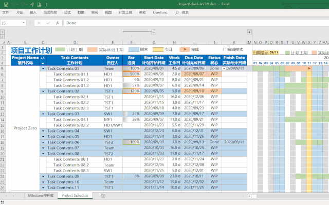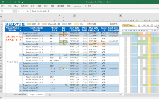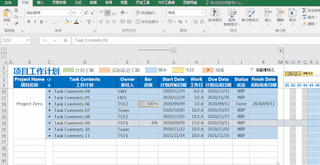 点击表头C4单元格的箭头还可以实现所有二级子任务的统一折叠与展开。