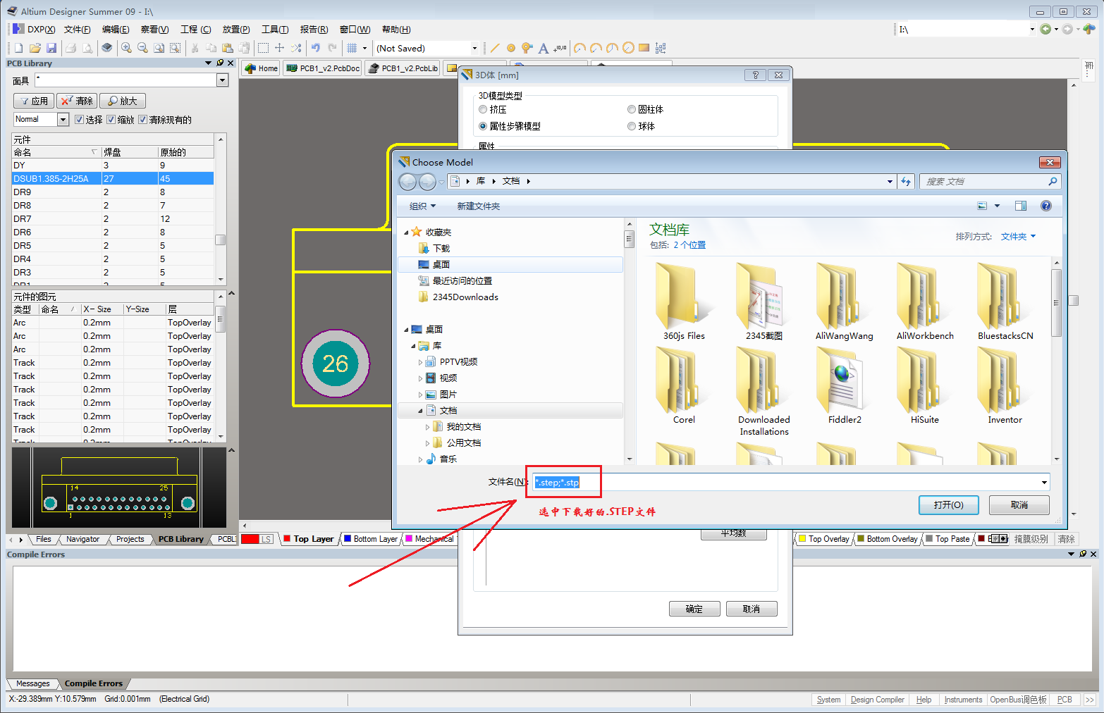 1、元件的.step文件,是的没错是后缀为step的文件。(其实我也不知有哪些3D软件可以制作出.step文件,只是' W5 Z: ^* G' I% e9 b9 B