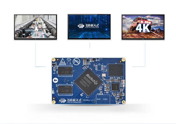 超强拓展 三屏异显FET3568-C核心板支持HDMI2.0、eDP、LVDS、Parallel RGB、MIPI_DS五种显示接口,且可同时输出三路显示信号,支持三屏异显和4K分辨率。强大的显示性能,让FET3568-C核心板可带来优秀的人机交互体验,在单屏手持终端、双屏收银机、多屏广告机、多屏KTV点歌机、电子站牌、自助服务机、工业HMI等领域可发挥强大优势。