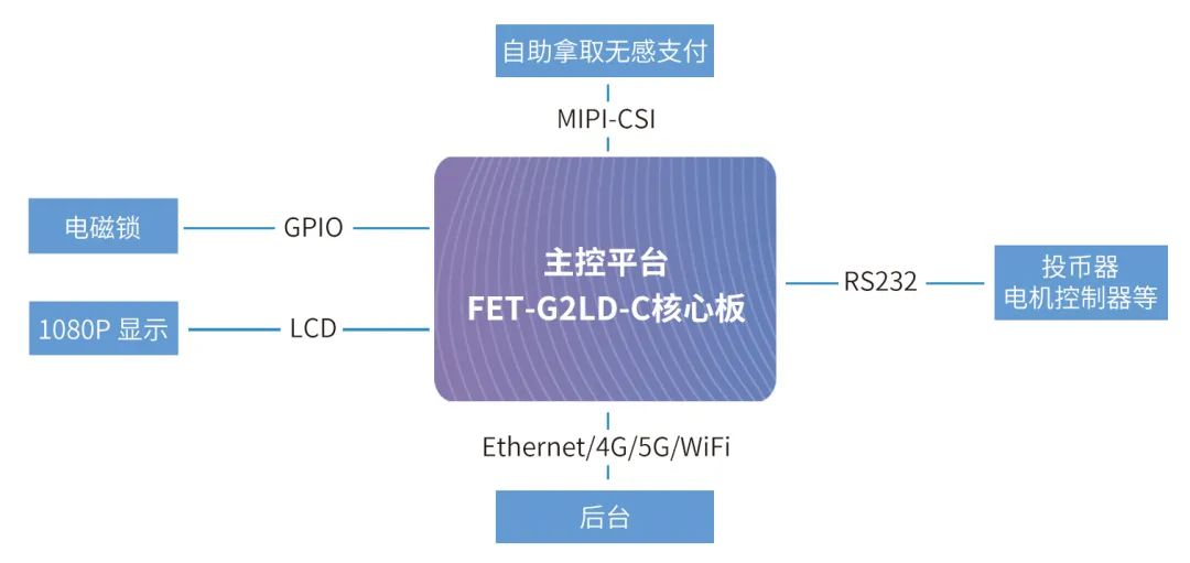 FET-G2LD-C核心板支持1080P分辨率,并集成500MHz 3D GPU,支持Vulkan、OpenGL、OpenCL,可令工程师在开发人机交互图形界面时不受性能局限,提升人机交互体验。其支持MIPI-CSI摄像头、多路UART,可实现自动拿取无感支付,传统扫码支付,投币支付等多种支付方式。