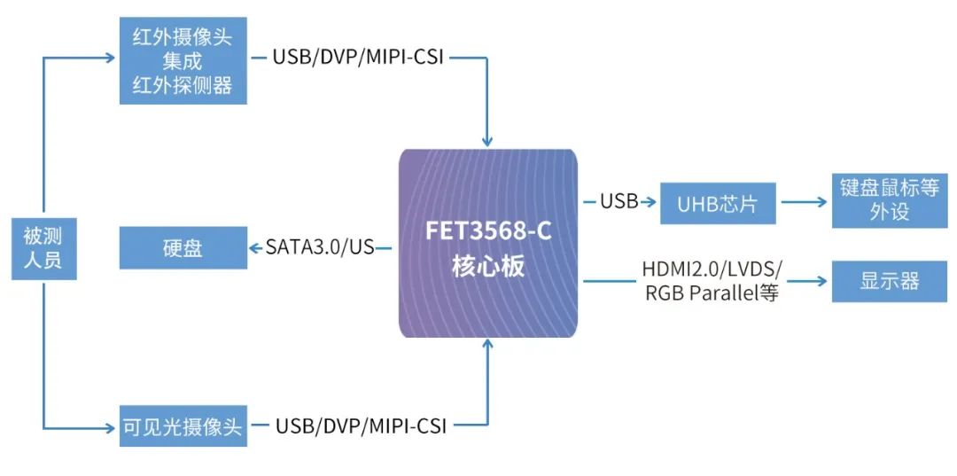 以上就是飞凌嵌入式提供的基于FET3568-C核心板的红外热成像体温检测系统方案,希望对您的选型和方案设计有所帮助。