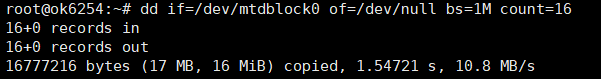 root@ok6254:/#dd if=/dev/zero of=/dev/mtdblock0 bs=1M count=16 conv=fsync