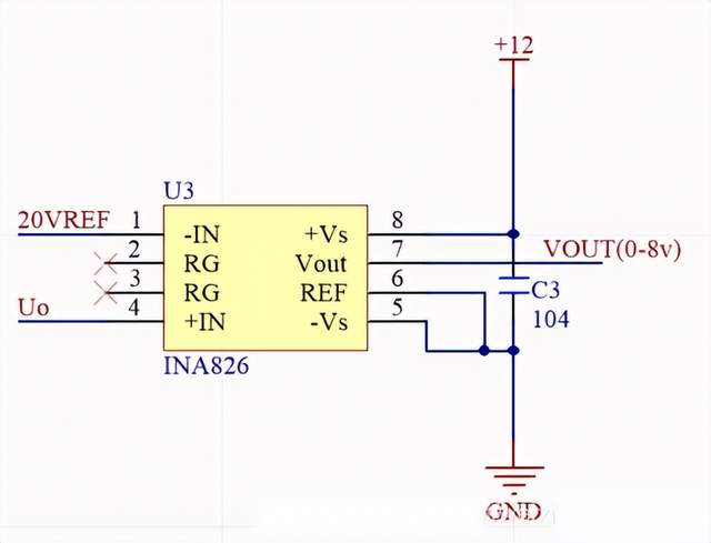 2、通过仪放将Uo与20v差分(注:826的REF引脚为输出基准)