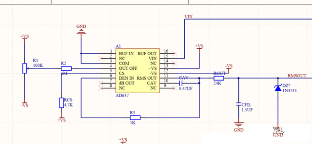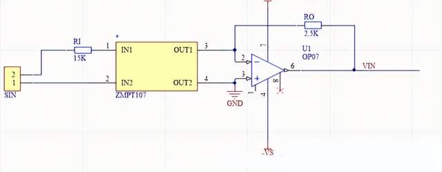 设计思路:通过电压互感器将电压读取到,并放缩到合适的范围内,输入给有效值检测芯片,再将有效值检测芯片的输出给AD。