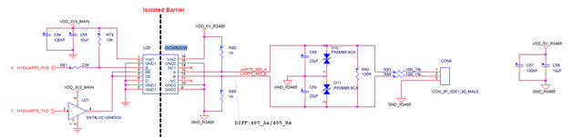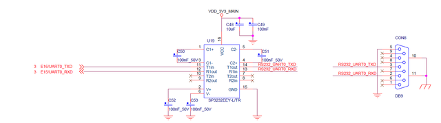 而由于各自使用的电平有所不同,因此由UART转换为RS-232、RS422或RS-485时,需要经过一个SP3232E、SP3485(或则其他转换芯片)。