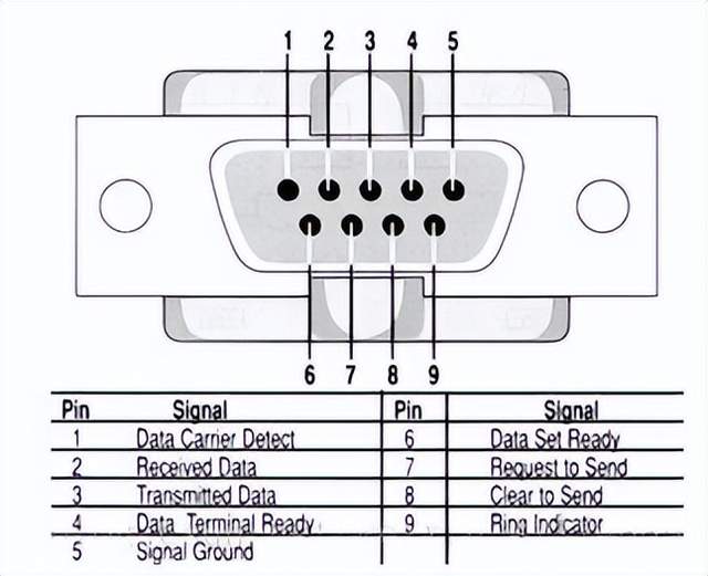 RS-232 一般只使用RXD(2)、TXD(3)、GND(5) 三条线;