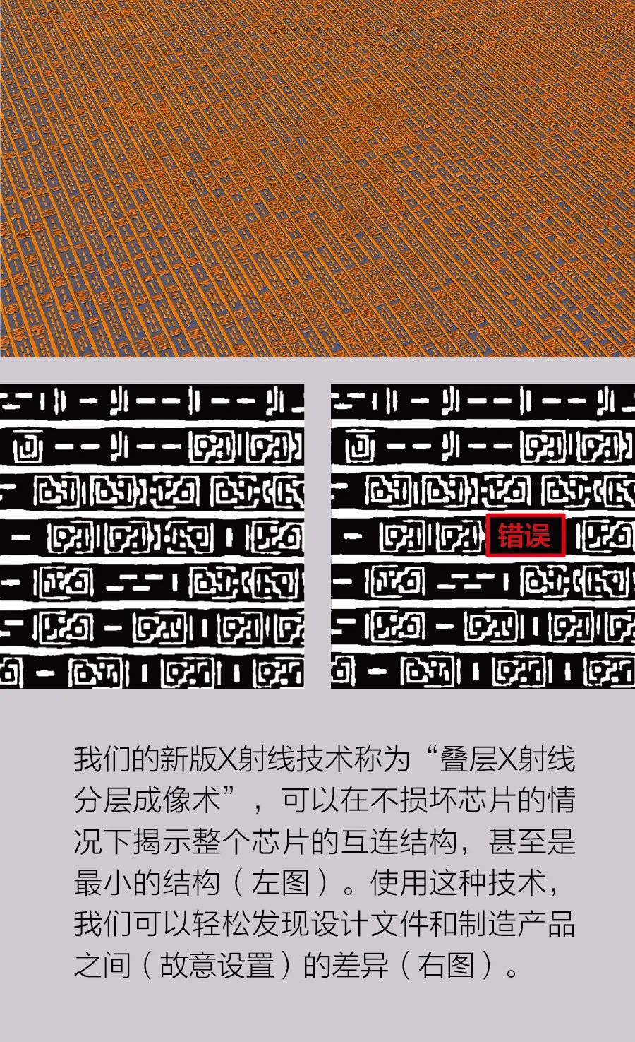 半导体工程师 icfalab 2022.11.20任何商业秘密或硬件木马都躲不过叠层X射线分层成像术。烤蛋糕的时候,我们很难知道烤箱里何时才能达到我们想要的状态。对于微电子芯片来说亦如此,其中的风险甚至更高:工程师们如何确认芯片内部完全符合设计师的意图?半导体设计公司如何判断其知识产权是否被盗?更令人担忧的是,谁能确定其中没有秘密嵌入自毁开关或其他硬件木马?