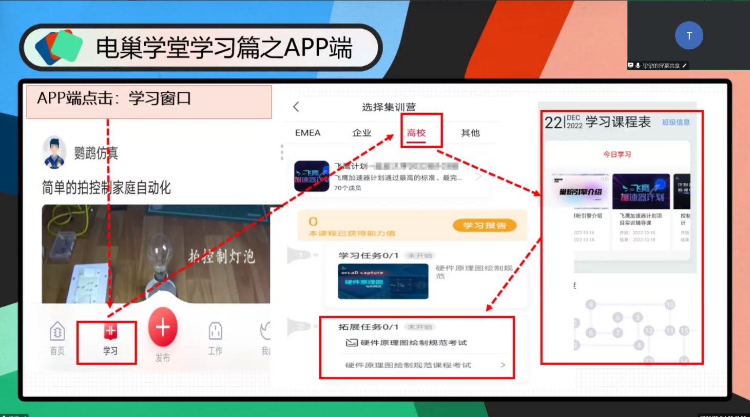 最后电巢科技教务梁柳荣为大家介绍了电巢学堂学习指南、巢云引擎实训指南以及答疑板块,让同学们对此次飞鹰实训有了更加清晰的认识。