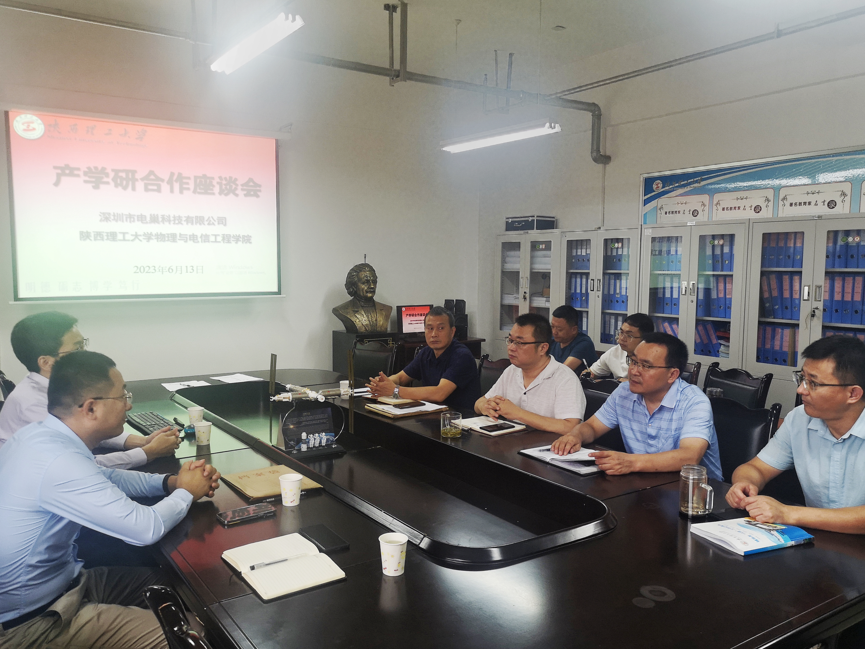 7月6日上午,深圳市电巢科技有限公司联合陕西理工大学物理与电信工程学院在校内举行产学研座谈会,并完成了“新工科人才联合培养基地”的签约暨授牌仪式。陕西理工大学物电学院党委书记韩强,院长卢超,副书记潘峰,副院长黄朝军,电信系主任韩团军、秦伟、杨创华,通信系主任龙光利、王战备及学院其他老师出席此次活动,电巢科技副总经理蒋学东,高校合作部总监顾鹏,高校市场客户经理马浪前往参加。