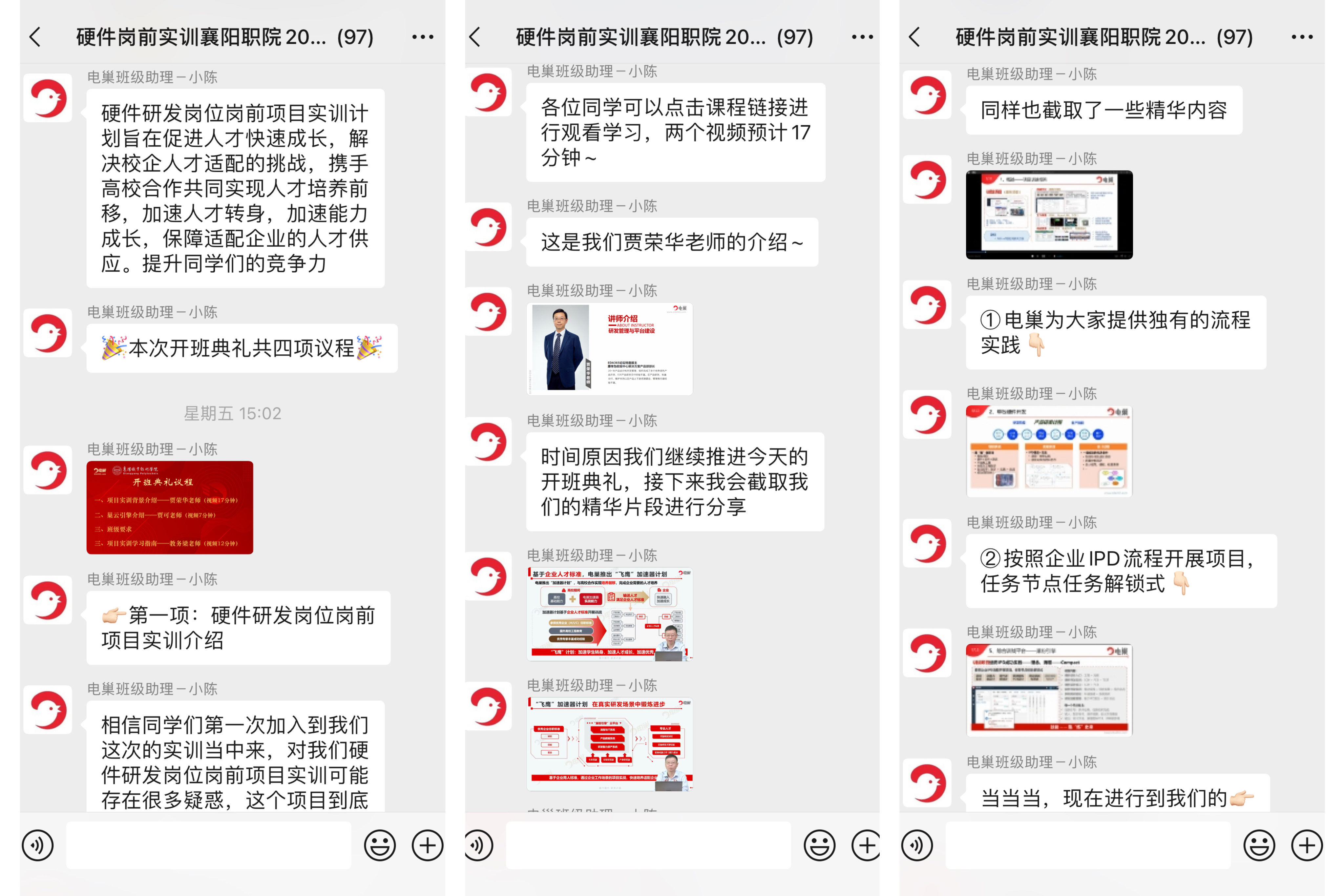 7月7日下午3时,深圳电巢联合襄阳职业技术学院信息技术学院硬件研发岗位岗前项目实训2023级064班开班典礼在学习群内举行,襄阳职业技术学院信息技术学院物联网应用技术专业52名同学参与此次实训。