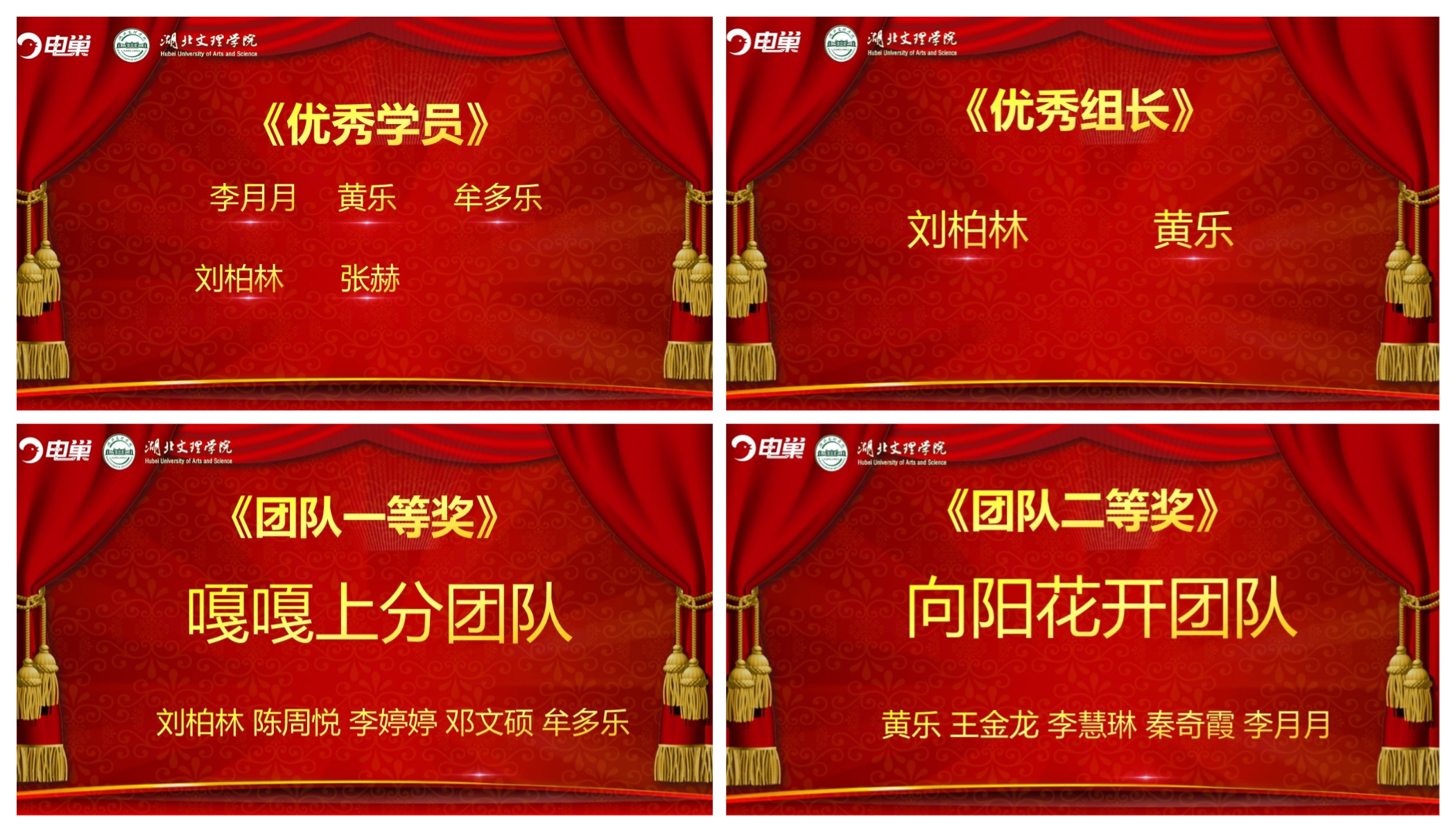 在本期硬件岗位岗前项目实训中:李月月同学、黄乐同学、牟多乐同学、刘柏林同学、张赫同学,被评为“优秀学员”;嘎嘎上分队、向阳花开团队,被评为优秀团队;刘柏林同学、黄乐同学,被评为“优秀组长”。