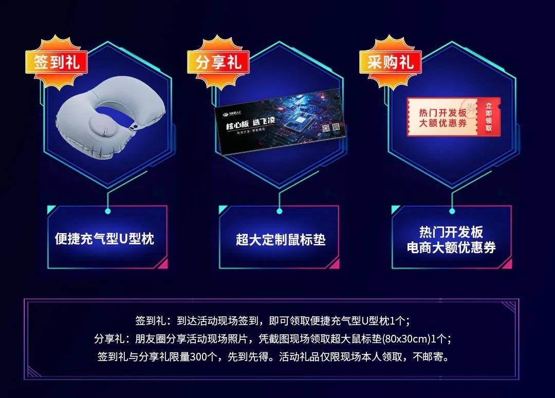 3、现场好礼本次飞凌嵌入式技术创新日,不仅有干货知识为您充实头脑,还有丰富的礼品让您的口袋满载而归。飞凌嵌入式准备了多重好礼——舒适的U型枕、超大的鼠标垫、大额的优惠券,到场即可零门槛获得;参与抽奖,还有机会拥有华为MatePad、华为GT4手表和小米蓝牙耳机。