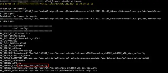 注:不清楚内核使用哪个defconfig可以通过编译内核时的RK_KERNEL_CFG打印信息查看。