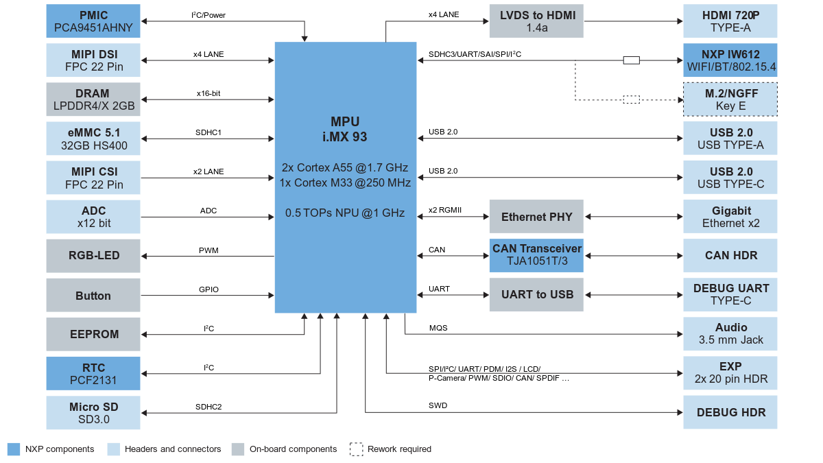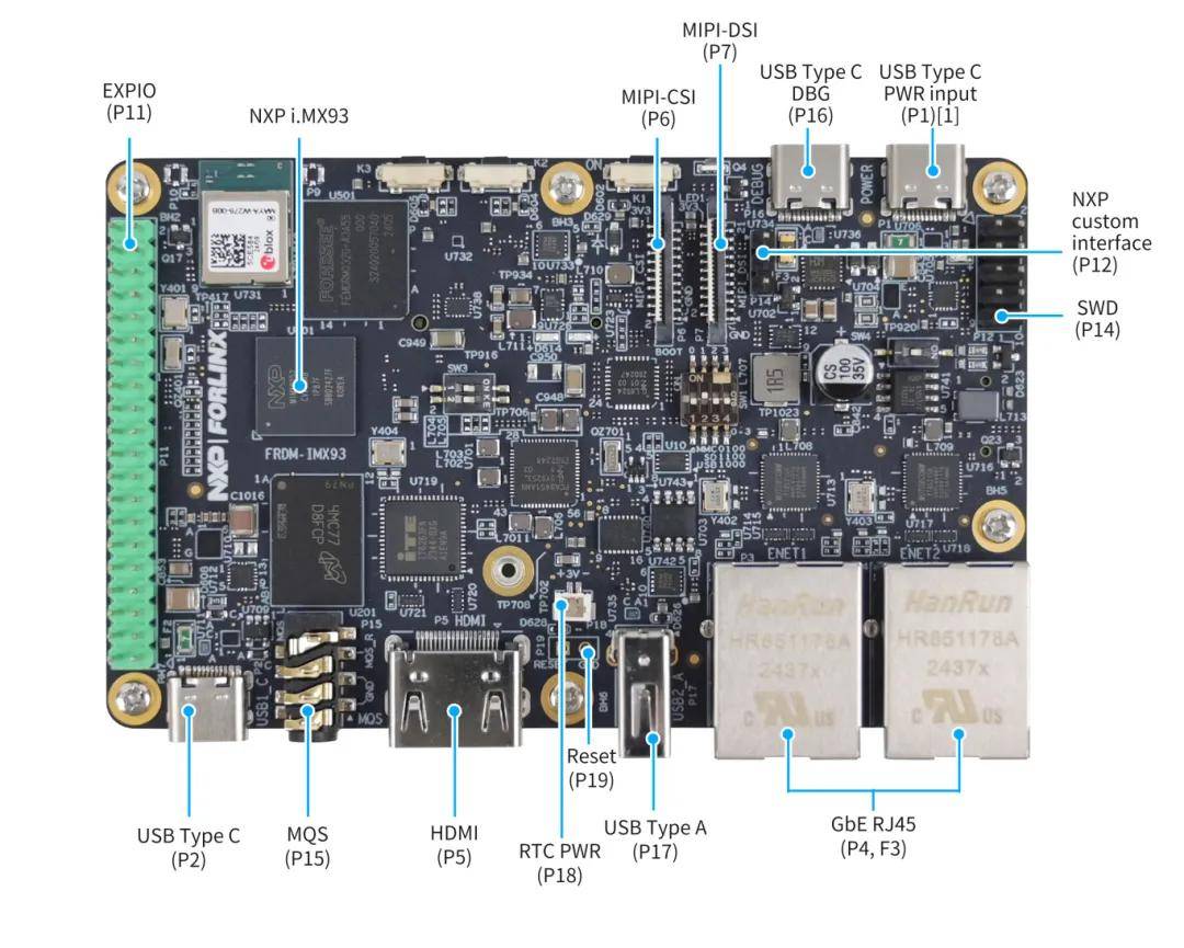 FRDM i.MX 93正面接口图