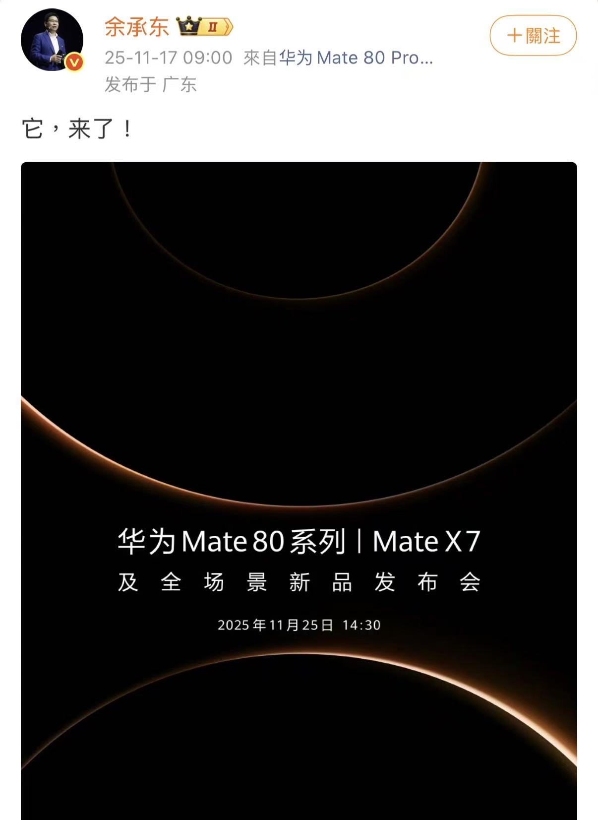 | “它,来了!” 2025年11月17日,余承东在个人社交平台公开华为新品发布会的海报,官宣Mate80系列、Mate X7于11月25日正式登场。此外,更值得注意的是,余承***交平台带的机型小尾巴居然是“华为 Mate 80 Pro Max”,这是Mate系列史上首次出现“Pro Max”后缀的机型。 ![]() (图源:微博/余承东) 在后续公开的官方视频里,华为Mate 80 Pro Max的真机首度亮相,双圆环的设计,基本证实了此前爆料Mate 80系列增加磁吸设计的传闻。 对华为而言,Mate系列从来都不是例行更新的产品线,每一代的到来都是为华为后续产品和发展路径打下基础。而Mate 80系列、Mate X7又将带来哪些影响行业的设计呢? 双圆环后盖设计,一切为了磁吸? 官方宣传视频中出镜的大概率为金色款的华为Mate 80 Pro Max,背部双圆环的设计一下就抓住了大家的眼球。镜组部分,相比起前代,Mate 80 Pro Max居中留白部分占比较高,应该是为潜望镜组预留的底部空间;而下方隐隐若现的圆环,则被认为是为磁吸设计。 ![]() (图源:华为) 手机磁吸设计其实并不是新鲜事,早在2020年iPhone 12系列上,苹果就将其带到手机领域。对于苹果而言,目前官方仅将手机的MagSafe定位为无线充电配件、装饰配件的接口,并未发挥出巨大的潜力。 安卓阵营其实早已认识到磁吸的好,但过去五年没能真正铺开。根本原因不是“不好用”,而是没有愿意为此重构机身结构的品牌。在多数安卓磁吸配件中,磁铁只贴在手机壳上,而不是系统级嵌入机身。但不得不承认,OPPO、小米都为自家的磁吸生态开发了足够多有趣的配件,例如补光灯、散热背夹等。 Mate 80系列首发磁吸设计,大概率也会与鸿蒙生态有着千丝万缕的联系。可以预想到的是,手机贴上车载支架,导航、车机控制、音乐不再手动切换;磁吸拍摄握把带来专业相机般的握持与快门体验等。当然,在Mate系列上推广磁吸,也能帮助生态伙伴们尽早确立相关标准,不会像安卓阵营一样碎片化。 ![]() (图源:华为) 磁吸以外,Mate 80 RS非凡大师将独占20GB内存。在移动设备上,常见的高内存级别为12GB、16GB或24GB,这是因为手机内存通常由多颗LPDDR内存芯片组成,而20GB这个不太常见的组合方式,很可能是华为为这款机型单独定制的方案。 这个方案,极有可能是华为为其端侧AI常驻内存做的准备。比如,你在刷短视频,AI记得你刚讨论的内容;你在导航,AI保持语义搜索的准备状态;相册的识图索引可以持续优化,而非偶尔运行。而这样一来,内存的占用自然会比其他机型更多些。 ![]() (图源:华为商城) 回到Mate80系列硬件本身,全系四款机型:Mate 80、Mate 80 Pro、Mate 80 Pro Max和Mate 80 RS 非凡大师,均配备侧边指纹+3D人脸识别,以及回归直面屏+直角中框设计。其中,Mate80 Pro Max和Mate 80 RS 非凡大师均配备四摄影像方案,双潜望长焦。 至于Mate X7折叠屏手机,目前还没有官方消息泄露,但基本能确定的是延续轻薄设计路线,背部Deco采用全新设计,影像部分有进步,内外屏都采用了新的比例。无论如何,作为年度旗舰,Mate 80系列和Mate X7都将会是今年末讨论度最高的一批新机,不仅仅是一些新技术亮相,还有伴随新命名带来的争议。 都叫Pro Max,华为这次正面刚苹果 在华为Mate 80系列|Mate X7及全场景新品发布会官宣后不久,小米集团总裁卢伟冰在个人社交账号发布了一条意味深长的微博:越来越多Pro Max来了,不过6K档最强的还是小米17 Pro Max,4K档最强的还是REDMI K90 Pro Max。 ![]() (图源:微博/卢伟冰) 2019年,苹果推出iPhone 11 Pro和iPhone 11 Pro Max两款机型,后者定位为更大尺寸的iPhone 11 Pro,除续航和显示尺寸外,两者并无明显差异。自此,Pro Max这个后缀可以说是苹果非常有标志性的命名方式。在今年,小米突然跳过数字16,改名为小米17,并将大屏版本命名为小米17 Pro Max,引起了不少争议。 而随后发布的REDMI K90系列,也同步将大屏版本命名为REDMI K90 Pro Max。 但争议归争议,小米两款Pro Max新机口碑销量双丰收。微博RD观测公开的数据显示,截至2025 W45周期,小米17系列销量达211.8万,而其中销量最高的为小米17 Pro Max。REDMI K90 Pro Max的销量也达到16.6万台,系今年子系旗舰里表现非常不错的一台。 玄学一点解读,「Pro Max」这个后缀的确为小米带来了不俗的流量,也获得不错的销量。同时也得益于小米17 Pro Max,让小米首次跻身京东双11 6K+价位机型竞速榜,甚至做到了国产品牌第一。 ![]() (图源:微博) 对于华为而言,重新命名Mate系列超大杯,自然不是为了讨这波流量,也不是为了冲击销量。毕竟前代Mate70 Pro+销量一直很好,且今年双11榜单上进入了前十名。在我看来,华为采用Pro Max命名,本质上并不意味着随大流,而是选择与用户长期形成的认知体系直接对齐。对于一款目标价位可能覆盖6000元至8000元以上的旗舰来说,让用户能快速理解定位,比增加一个新产品更重要。 更重要的是,此次Mate 80 Pro Max从性能、影像到外围配置上,几乎都与Mate 80 RS 非凡大师对标看齐,和定位稍低的Mate 80 Pro拉开距离,的确是名副其实的「Pro Max」版本。 ![]() (图源:华为) 那么,iPhone 17 Pro Max、小米17 Pro Max已经交出漂亮的成绩单,华为正面对标的Mate 80 Pro Max能否享受到「Pro Max」的红利,刷新自身的销售记录呢?答案可能要等到Mate 80系列正式开售后才能得知了。 今年的高端局,Mate成关键变量 今年的手机市场,显然已经不是「谁冲高端」这么简单了。 过去这一整年,几乎所有主流厂商都在争夺高端用户的注意力,苹果依