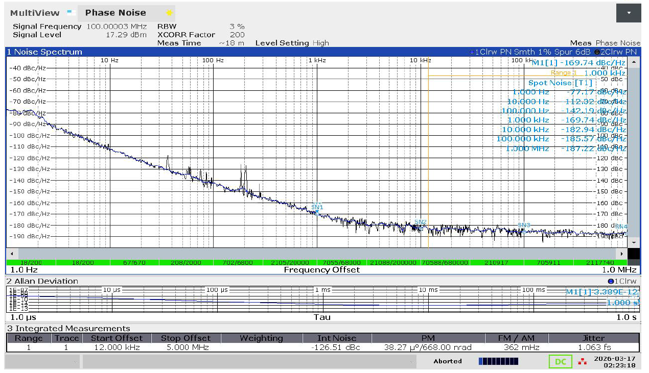 五、杭晶高稳超低相噪产品 杭晶25x25mm OCXO 100MHz 超低相噪可低至-168dBc@1kHz 测试数据: https://prod-1251541497.cos.ap-guangzhou.myqcloud.com/discuz/images/pc_830d577eabcf3753748433cd265d7be1_1775204268025.png